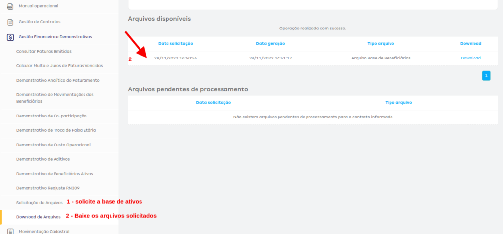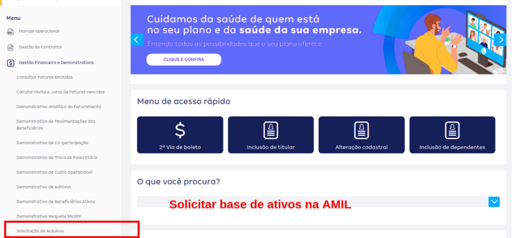 Após se logar no site da AMIL poderá acessar o seu manual de uso, e localizar nas páginas 21 e 22 as instruções para baixar bases de ativos.