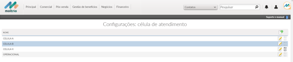 Alterar ou apagar uma célula: Poderá apagar as células que não deseja usar ou renomear elas clicando no lápis ✏. Caso a lixeira esteja desabilitada significa que aquela célula já esta em uso.