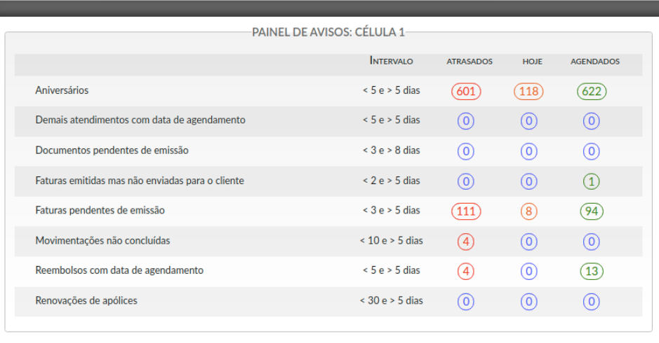 Atenção! O painel de avisos não lista apenas pendências. Também há avisos para ações estratégicas da corretora, como o aviso de aniversariantes.